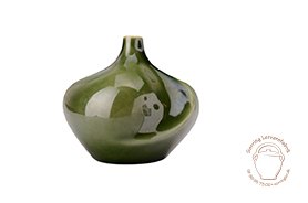 Denne grønne nuance er et sjældent syn i dette temperaturområde. Glasuren bliver mørkere på jernholdige lertyper.