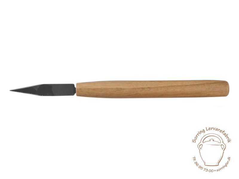 Pottemagerkniv med dobbeltslebet blad.