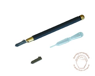 Denne selvsmørende kvalitetsglasskærer påfyldes skæreolie i skaftet. Når skæreren trykkes mod glasset, siver olien ned på skærehjulet.